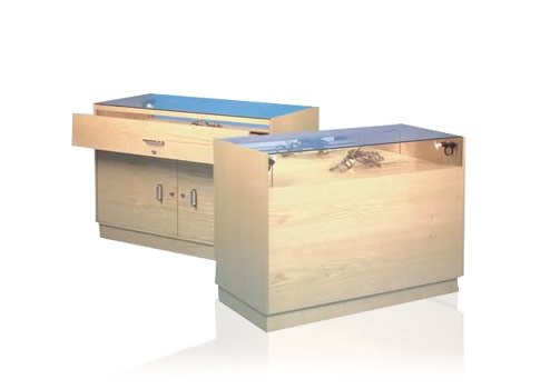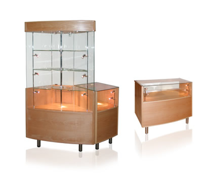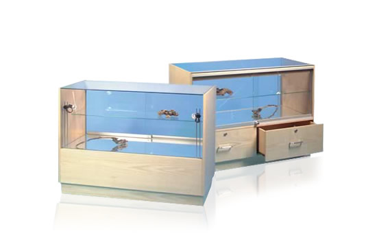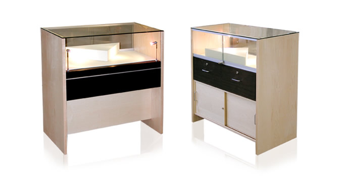 Display Shelf With Rear Mirror Panel, 2 No. Lockable Sliding